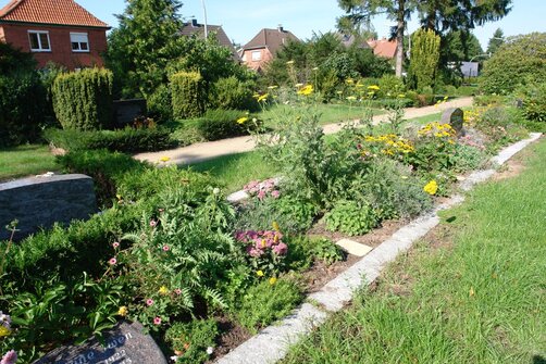 - In den Urnenwahlgräbern im „Urnengarten" auf dem „Neuen Friedhof" kann die Beisetzung der Urnen in der Erde oder in Urnenstelen erfolgen. Die Bepflanzung und Pflege der Grabstätten erfolgt durch die Friedhofsverwaltung. Eine eigene Bepflanzung ist nicht möglich.