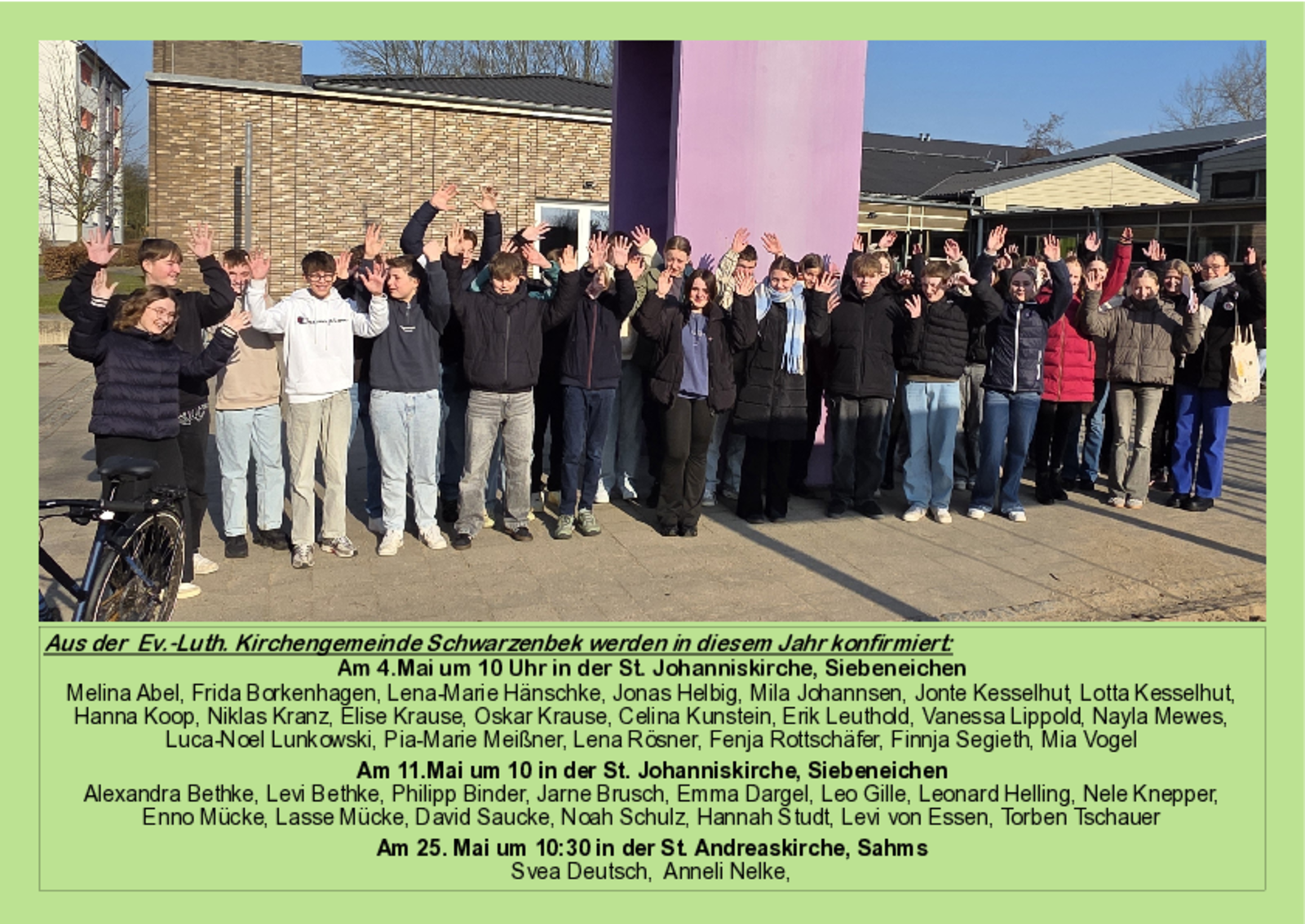 Für 2025 können wir folgende Konfirmationstermine jeweils um 10 Uhr in der St. Franziskus-Kirche bekanntgeben: